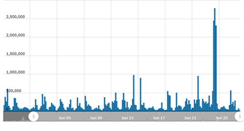 According to a report by blockchain analysis firm CCData, daily trade volume between Russia’s official currency Ruble and Tether [USDT] spiked to $15 million on 24 June, representing a jump of more than three times from the previous day figures.
