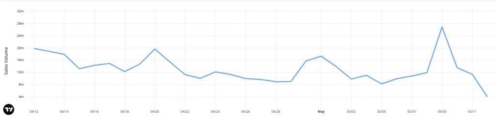 Following the drop in prices, sales volume on the Ethereum blockchain fell incredibly. According to CryptoSlam, the metric decreased by 19.89% in the last seven days. This left the volume at $450.11 million.
