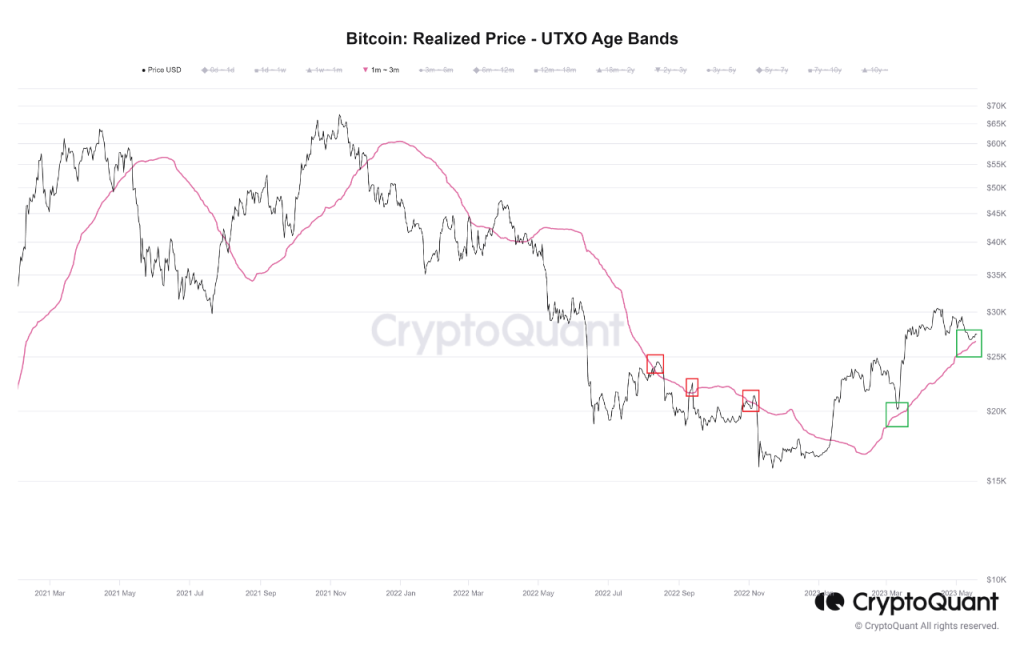 Since the start of the rally this year, though, the pattern seems to have flipped, as the realized price of the 1-3 months cohort has been providing support to the asset.
