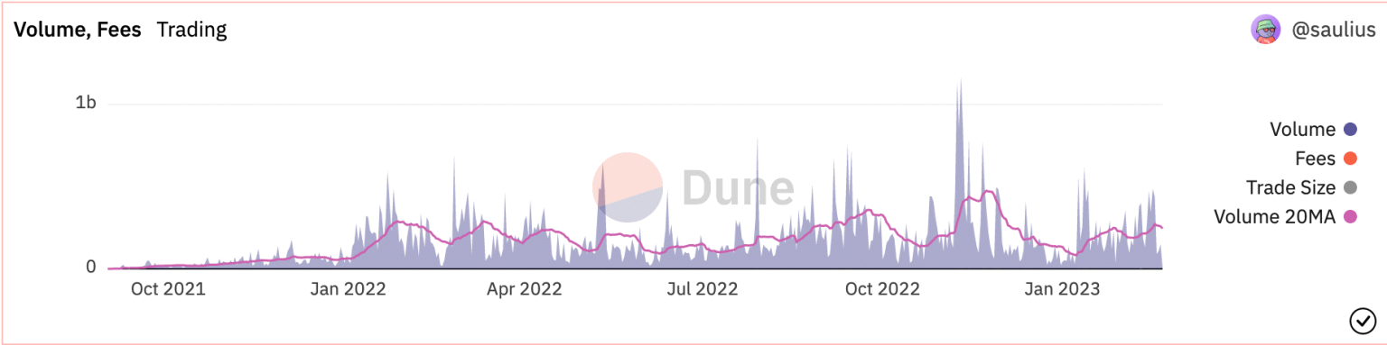 One reason for the growing volume would be the high number of traders on the platform. According to Dune Analytics’ data, the overall number of traders on the protocol had increased immensely over the last few months. A high number of traders on the protocol affected the overall volume and liquidity on the platform.