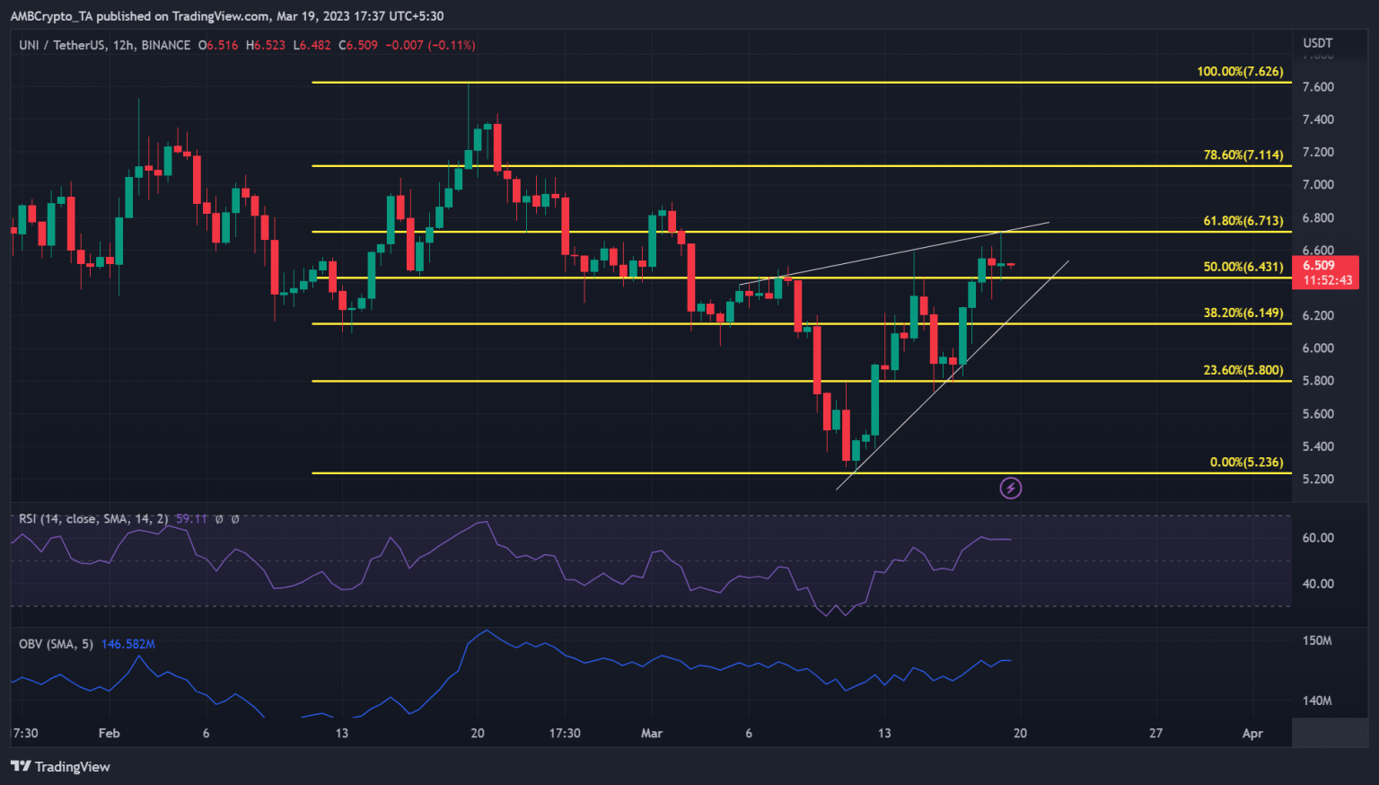 Uniswap [UNI] enjoyed a double boost last week. Firstly, the increased traction for DeFi systems after the U.S. bank run made it one of the benefactors. Secondly, Bitcoin’s [BTC] rally tipped UNI for an extra spike.