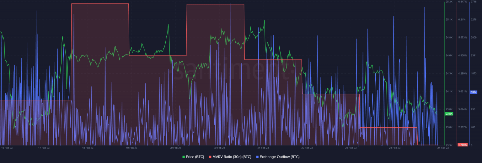 According to CoinMarketCap, BTC’s price registered a decline of nearly 2.5% in the last 24 hours, and at the time of writing, it was trading at $23,942.46 with a market capitalization of more than $462 billion. A deeper look at BTC’s on-chain metrics provided by CryptoQuant gave a better understanding of the market condition and shed light on the path BTC might take in the coming days.