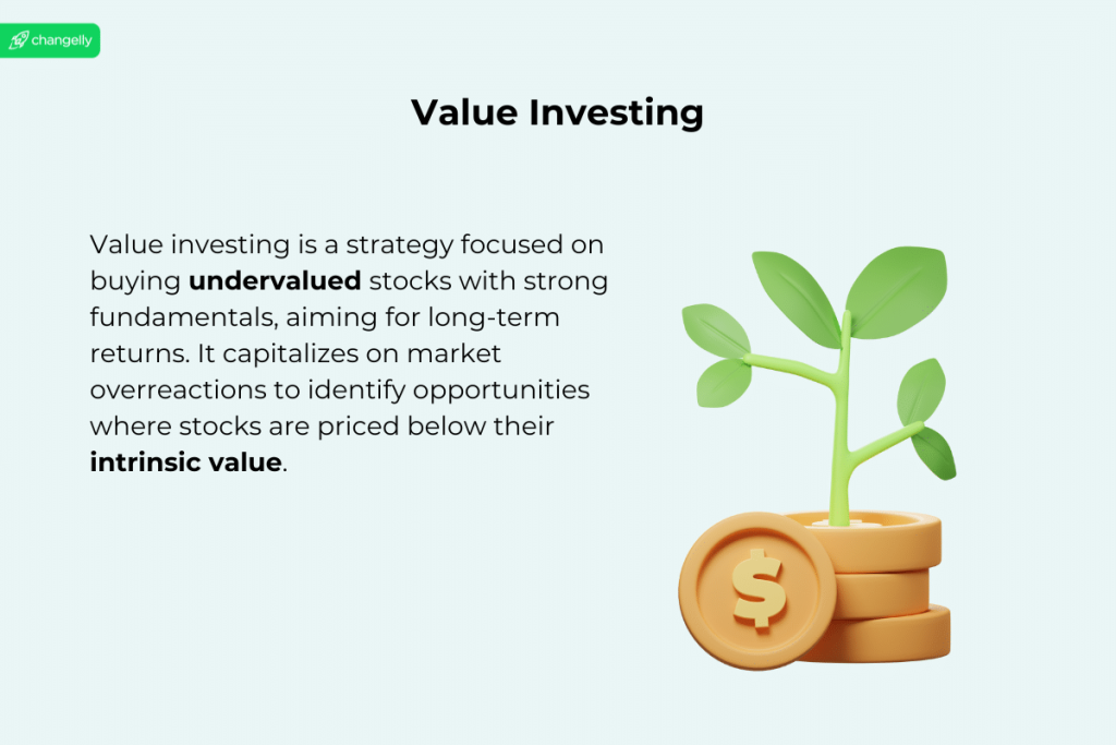 Value investing focuses on finding stocks that are undervalued based on their intrinsic value and potential for future growth. The goal is to buy low and sell high, so this strategy emphasizes stock pricing. Value investors typically have a longer time horizon and may prioritize dividend payments as a source of income.