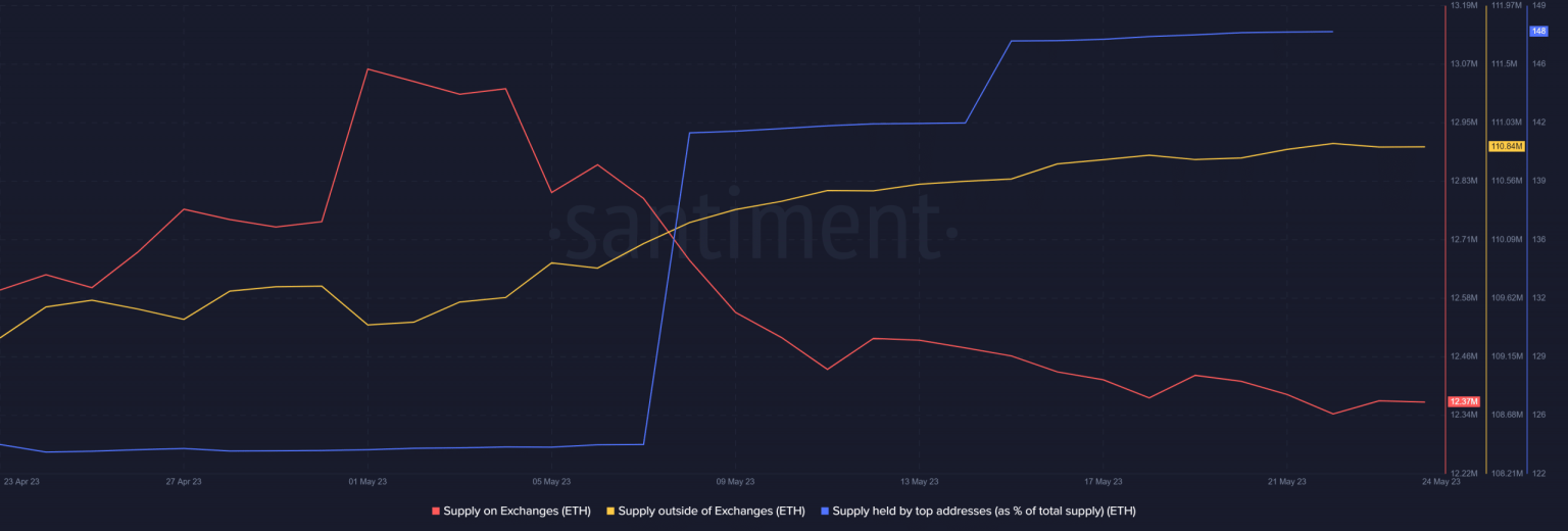In addition to that, Santiment’s data actually revealed that investors were not selling but rather accumulating ETH. The supply held by top addresses increased considerably in the last 30 days.