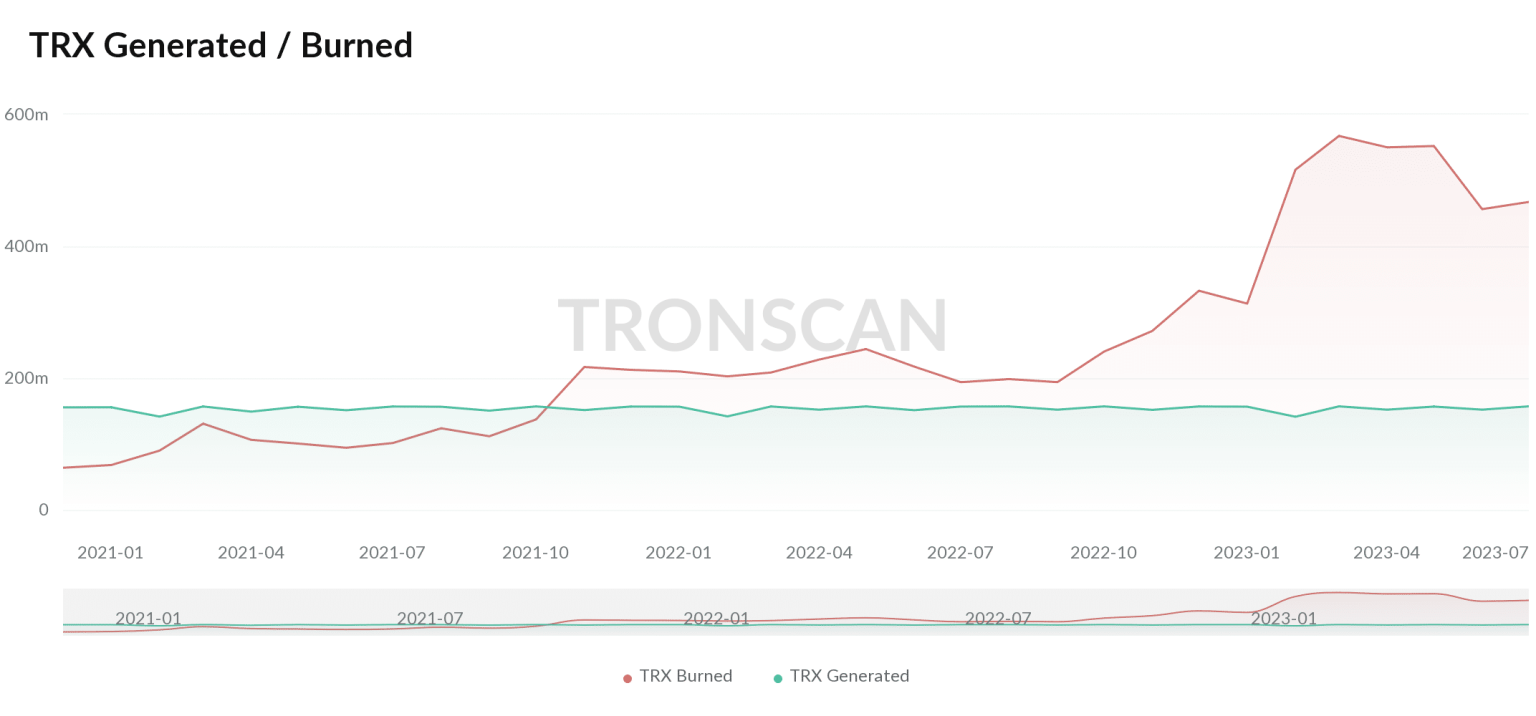 With the intention of long-term market value growth, TRON continued to apply deflationary pressure on its native token TRX. The network removed 467 million tokens out of circulation in the month of July, as per Tronscan, marking a 2.4% increase from June’s figures. This achievement also marked a reversal from the 17% drop seen in June’s burn rate.