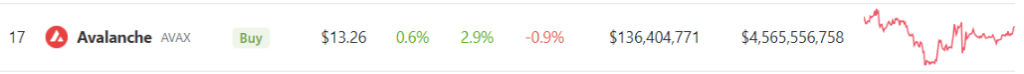 The current AVAX price on CoinGecko stands at $13.26, showcasing a 2.9% rally over the last 24 hours. However, despite this recent uptick, the asset has also experienced a 0.9% decline in the past seven days.