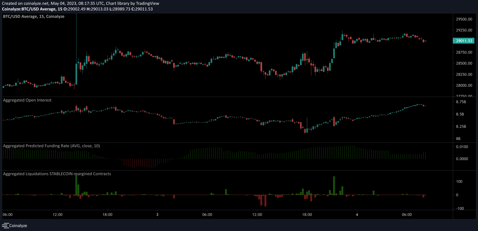 A move towards $30,000 could be next if the support at $28,800 holds. However, first a sweep if the open interest seems necessary as long positions on the futures market are once again heating up (during a sideways movement).