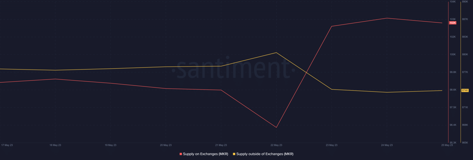 However, Santiment’s 24 May tweet revealed an interesting development that could positively influence MKR’s price action in the coming days.