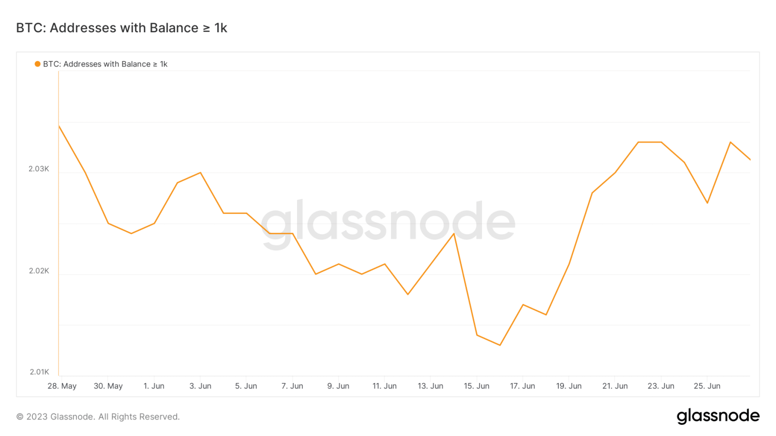 Bitcoin reclaimed the $30,000 price range thanks to the rally it achieved in the last two weeks. It exchanged hands at $30,156 at the time of writing. Whale activity strongly supported the rally. Furthermore, addresses holding over 1,000 BTC have been buying during the same two-week period.