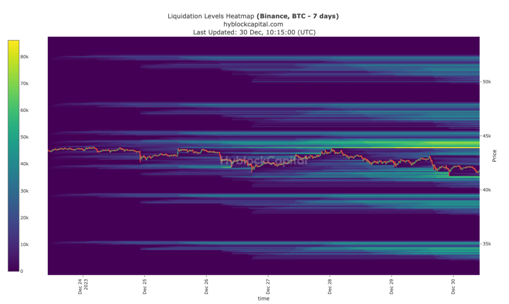 However, indications from the Liquidation HeatMap showed that Bitcoin might find it hard to hit $45,000.
