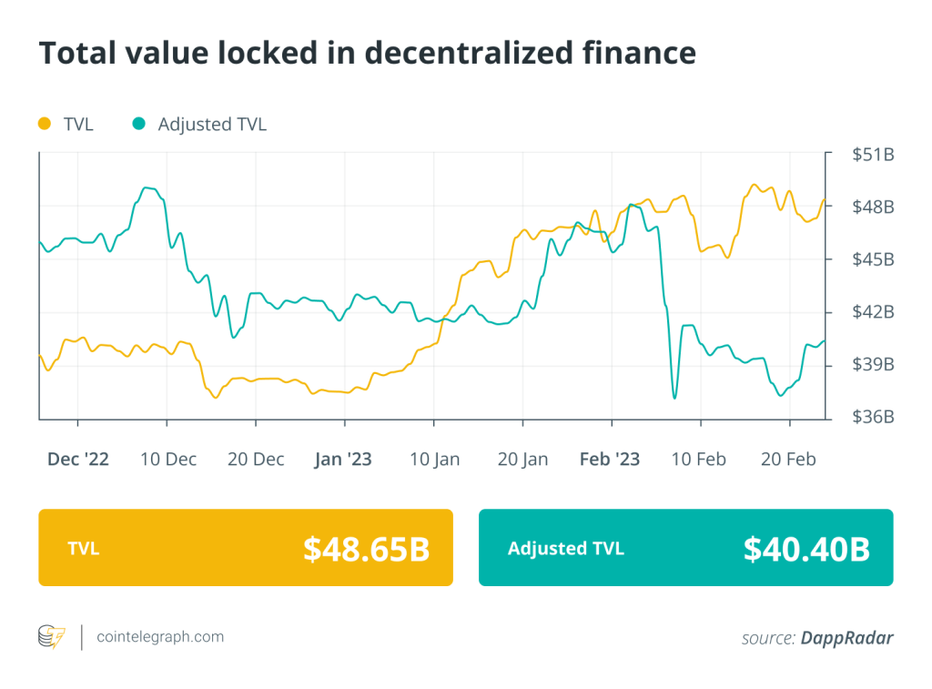 Analytical data reveals that DeFi’s total market value dipped below $50 billion this past week. Data from Cointelegraph Markets Pro and TradingView shows that DeFi’s top 100 tokens by market capitalization had a mixed week, with most of the tokens trading in green while a few others bled in red.